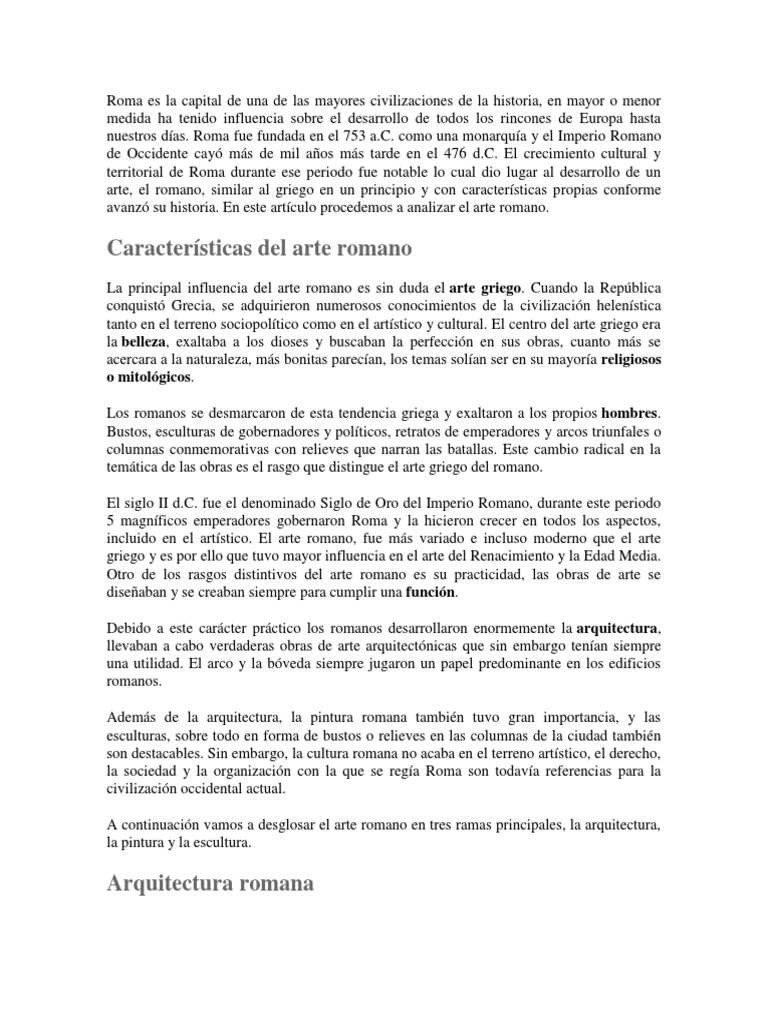 Profesor de Historia, Geografía y Arte: Arte romano: arquitectura, escultura y pintura